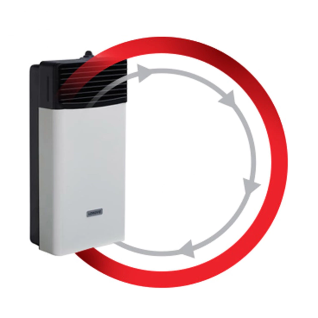 - Altamente eficiente: el 100% de las calorías directas al ambiente.